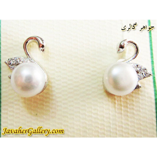 گوشواره نقره میخی مروارید طرح قو با نگینهای میکرو